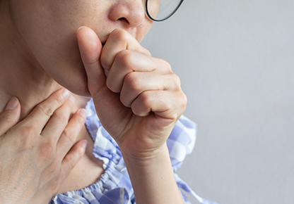 호흡 곤란과 기침이 나타날 수 있으며, 폐 섬유화로 인한 증상이 발생할 수 있습니다.
